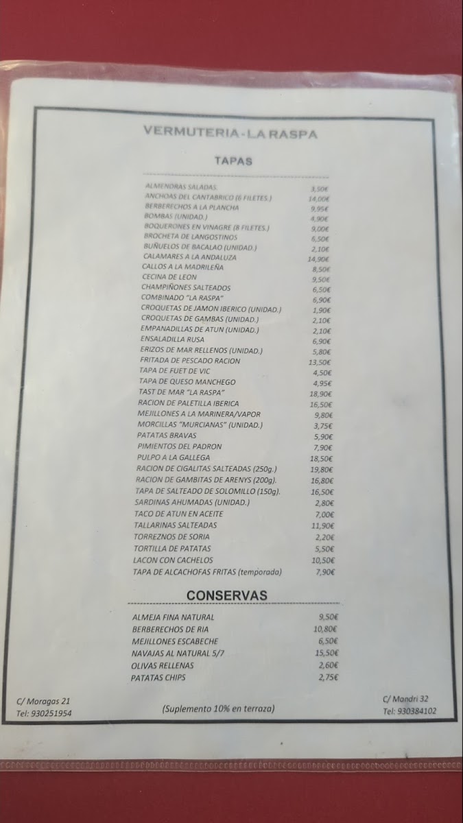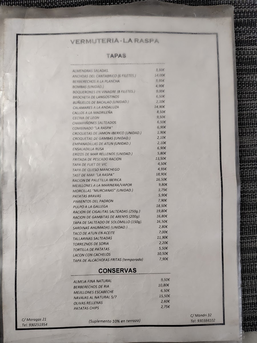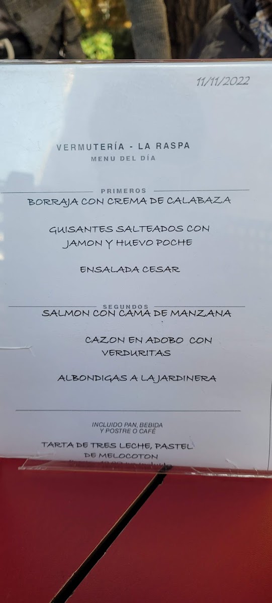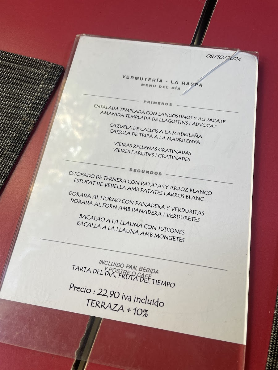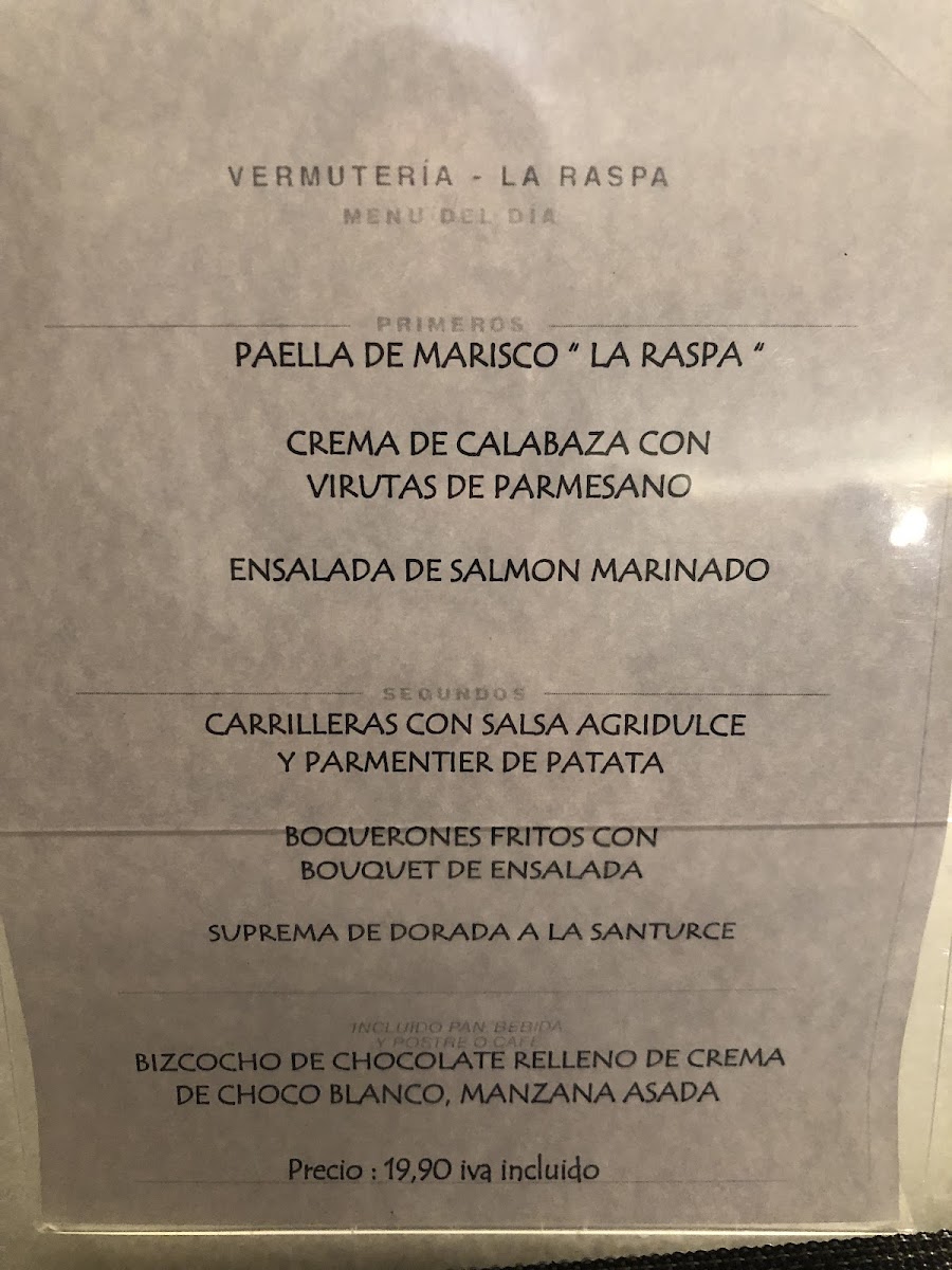Vermuteria la Raspa Menu